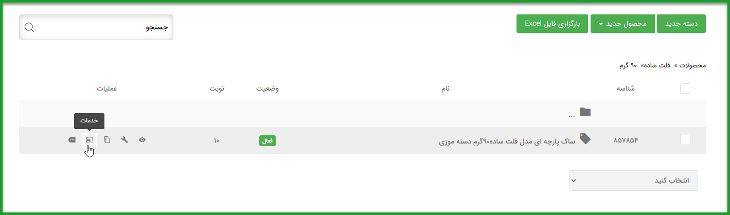 داشبورد / سربرگ محصولات/گزینه محصولات/دکمه سبز رنگ «دسته جدید»