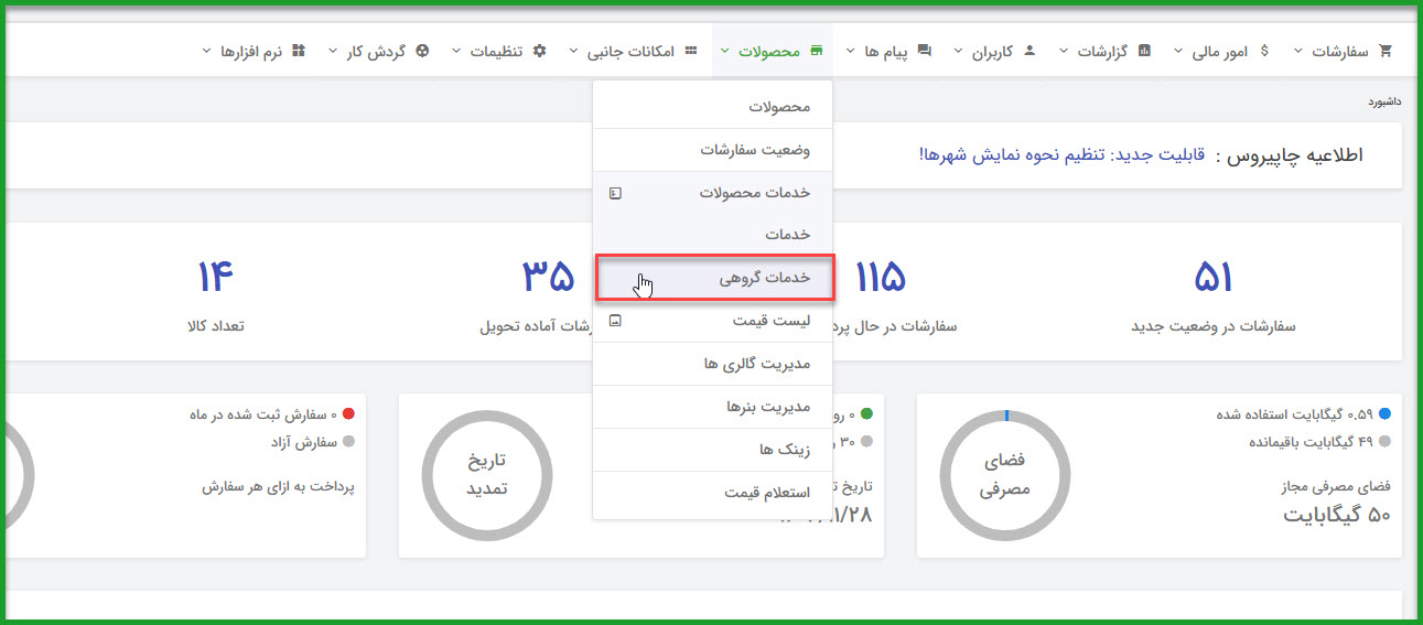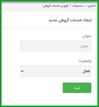 مسیر: محصولات / انتخاب محصول/ خدمات محصول / «خدمات گروهی»
