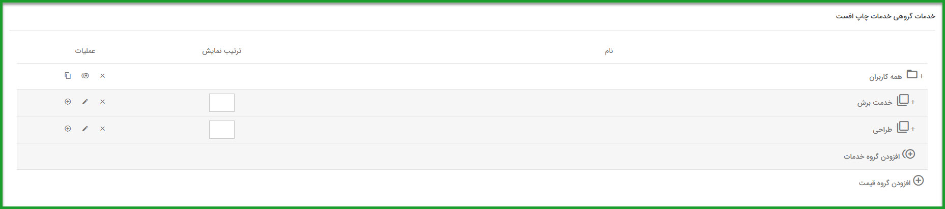 2. ایجاد گروه خدمات