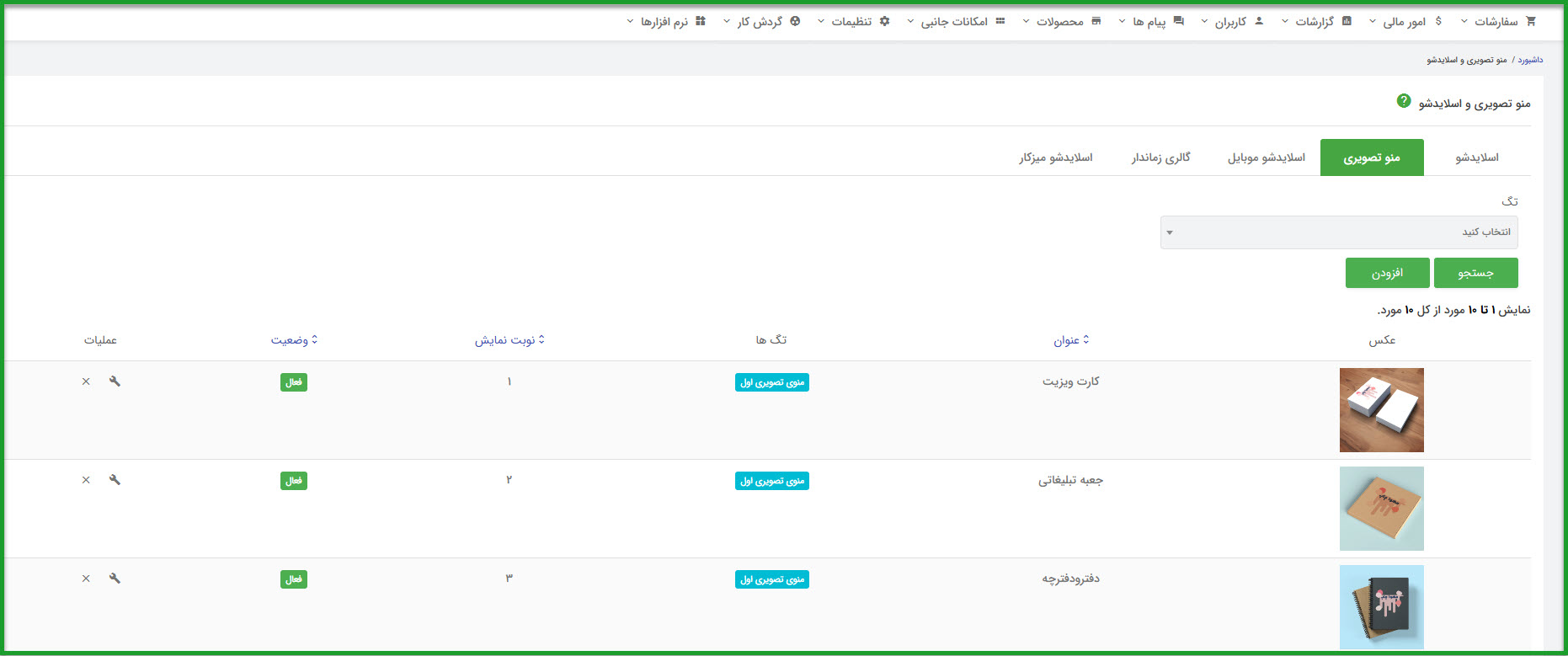 منوی امکانات جانبی/ منوی تصویری و اسلایدشو